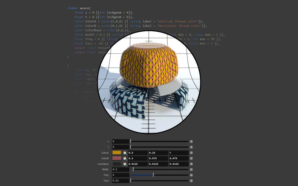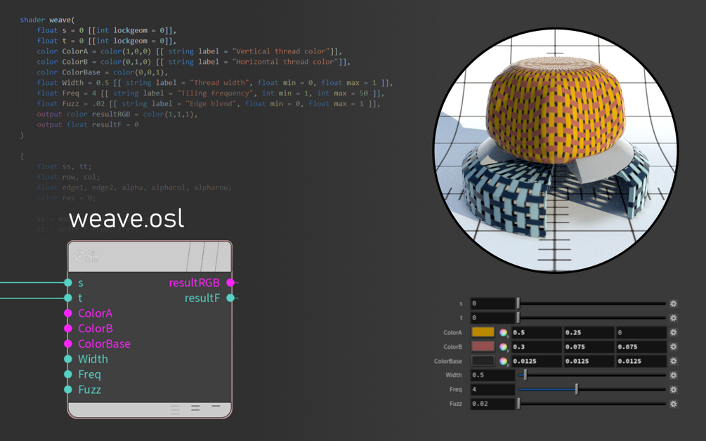 A cross-weave pattern OSL script adapted from Steve May's RSL crossweave.sl